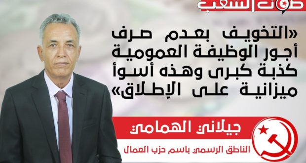 وصف الناطق الرسمي باسم حزب العمّال الجيلاني الهمامي المصادقة على قانون ميزانية الدولة لسنة 2020 عبر التخويف بإمكانية عدم صرف أجور الوظيفة العمومية بالكذبة الكبرى وتبرير تمرير أسوأ ميزانية في تاريخ تونس قائلا:”أشتمّ رائحة انفجارات عمّا قريب”.