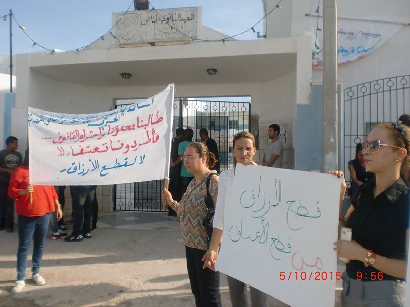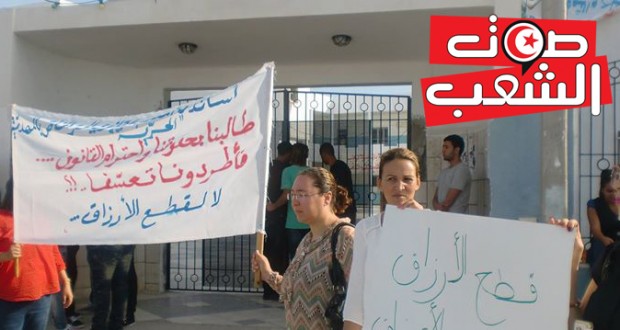 نفذ اليوم مجموعة من الأساتذة اعتصام أمام المعهد الخاص “الحرية” بالمهدية التابع لمنظمة التربية والأسرة، وجاء هذا الاعتصام على خلفية طرد التعسفي لعشرة مربيات بعد مدة عمل تتراوح بين 6 و12 سنة وقد علمت صوت الشعب أن أسباب الطرد عائدة إلى مطالبة مجموعة من الأساتذة بحقوقهن حسب ما يضبطه قانون الشغل والاتفاقية المشتركة لقطاع التعليم الخاص كما طالبت النقابة الأساسية للتعليم الثانوي بالمهدية في بيان لها السلط الجهوية بالتدخل لازام المنظمة المذكورة باحترام القانون ودعت زملاءها لمقاطعة العمل بالمعهد الخاص “الحرية” تضامنًا مع زميلاتهم المطرودات.