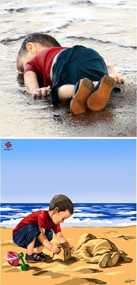 جندوز أغايف “Gunduz Aghayev” رسّام أصيل أذربيجان، يصدم العالم بتحويله صور فوتوغرافيّة صدمت العالم ببشاعتها إلى صور زيتيّة، تجسّد ما كان يجب أن يكون عليه الحال، وكلّ الصور التي رسمها تجسّد أطفالا إمّا أموات أو يقاسون الأمرّين…..