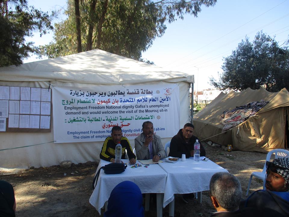 ساند حزب العمال اعتصام “بطّالة” قفصة بالمروج المطالب بالشغل والحرية والكرامة الوطنية أين تمت برمجة ندوة يوم الثلاثاء 29 مارس 2016 موجهة للمعتصمين وللمساندين، أمّنها السيد حسين الرحيلي تناولت مشكلة البطالة وتأثيرها على المجتمع في جانبيها الاقتصادي والاجتماعي، مقدما حلولا عملية لحل هذه الازمة. وهذا أمام حالة من الصمت والتعتيم الإعلامي الممنهج. وأمام مساعي محاولات خنق كل التحركات الإحتجاجية المنادية بمطالب وملفات إجتماعية حارقة يواصل مجموعة من المعطلين القادمين سيرا على الأقدام من جهات مختلفة بالتحديد قفصة وجندوبة والقيروان والقصرين إعتصامهم إلى غاية اليوم