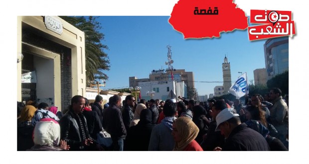 وقد شارك بالتحرّك الاحتجاجي معتصمون من مدينة زنّوش والسند إضافة إلى المعتصمين منذ فترة أمام مقرّ الولاية وعدد من المواطنين رفعوا خلالها شعارات تطالب بإيجاد حلول جدية لمطالبهم. وفي تصريحه لـ“صوت الشعب” قال سامي عمروسية عضو تنسيقية الجبهة الشعبية بالجهة أنّ السلط الجهوية لم تتصّل بالمحتجّين أو بمكوّنات المجتمع المدني للتفاوض حول المطالب، مضيفا أنّ مدينة قفصة عرفت تعزيزات أمنية كبيرة خاصة أمام مقرّ الولاية. من جانب آخر، قال عمروسية أنّ المحتجين قرّروا وبداية من يوم الاثنين المقبل تنفيذ وقفات احتجاجية يومية أمام مقرّات الإدارات الجهوية إلى حين إيجاد حلول واقعية للمعطلين عن العمل بولاية قفصة.