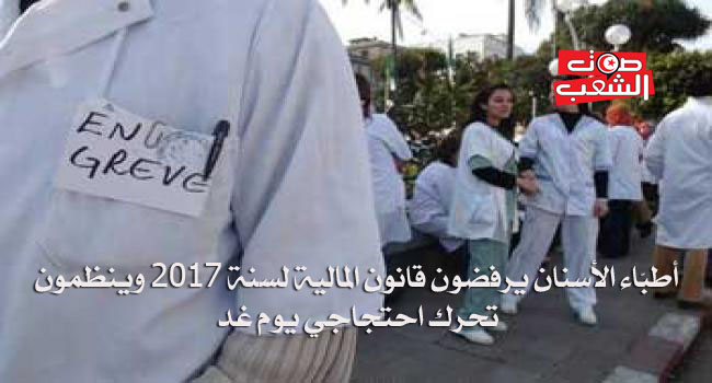 دعا أعضاء هيئة نقابة أطبّاء الأسنان جميع منظوريها إلى التعبير عن “غضبهم بشتّى الطرق الاحتجاجية السلمية من قانون المالية لسنة 2017 ” وذلك يوم الجمعة 21 أكتوبر الجاري مساندة لتحرّك هيئة المحامين.