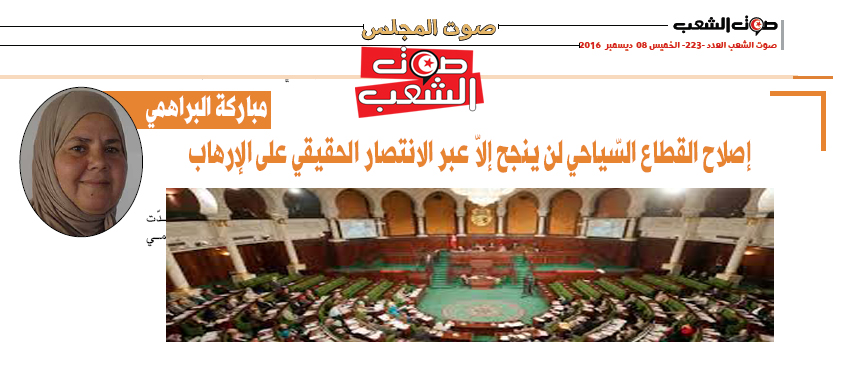 الرئيسية / الافتتاحية / صوت البرلمان / مباركة البراهمي: إصلاح القطاع السّياحي لن ينجح إلاّ عبر الانتصار الحقيقي على الإرهاب