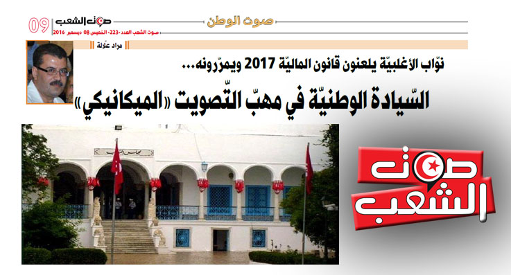 تسير الأمور داخل مجلس نواب الشعب هذه الأيام كما تشاء الأغلبية الحاكمة الحريصة على تمرير قانون المالية للعام 2017 كما اتفق في الآجال الدستورية المحدّدة بالعاشر من ديسمبر 2016، لكن بكثير من العناء أيضا بفضل اداء المجتمع المدني وفي مقدمته الاتحاد العام التونسي للشغل وكذلك المعارضة الوطنية وفي طليعتها الجبهة الشعبية بنوابها الخمسة عشر. هؤلاء النواب استبسلوا في الدفاع عن مواقفهم سواء في اللجان أو في الجلسات العامة التي أعطت للتونسيات والتونسيين صورة واضحة أكثر من أي وقت مضى عن الفجوة العميقة التي تفصل بين التزامات نائب الشعب الذي هو في نهاية المطاف رمز للسيادة الشعبية ومدافع عنها، وحسابات نائب الحزب الذي يغلّب مصالحه السياسية الضيقة ويتنكّر لناخبيه أولا وعموم شعبه ثانيا.