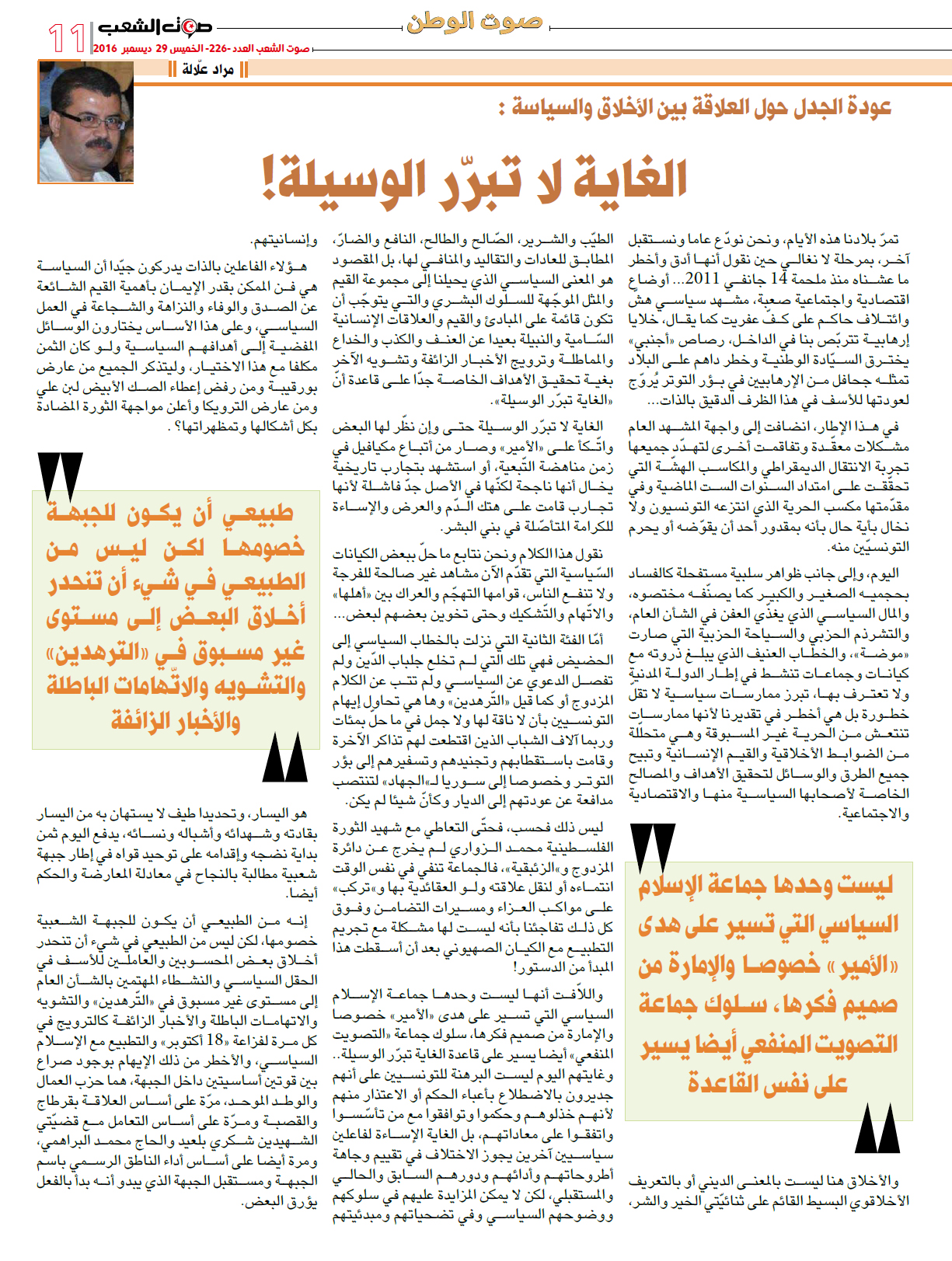 الغاية لا تبرّر الوسيلة حتى وإن نظّر لها البعض واتّكأ على “الأمير” وصار من أتباع مكيافيل في زمن مناهضة التّبعية، أو استشهد بتجارب تاريخية يخال أنها ناجحة لكنّها في الأصل جدّ فاشلة لأنها تجارب قامت على هتك الدّم والعرض والإساءة للكرامة المتأصّلة في بني البشر.