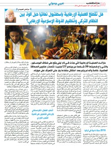 سنة جديدة دامية رغم أن تركيا وتنظيم الدولة كانا يقفان في نفس الخندق ممّا يجري في سوريا. فكيف سيكون إذن العام الجديد وقد أصبح العداء بين الطّرفين واضحا وبعد أن استباح قادة داعش أرض تركيا واعتبروها أرض جهاد؟ إنّ هذا الوضع ليعطي مصداقية لمطالبات القوى الديمقراطية في تركيا الحكومة بعدم إقحام البلاد في أتون الحروب الدّائرة في المنطقة والعودة إلى طاولة المفاوضات بخصوص المسألة الكردية والاعتراف بحقّ الشعب الكردي في تقرير مصيره.