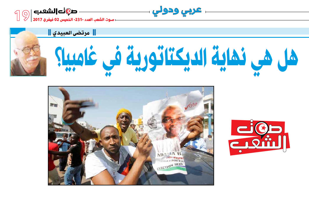 آخر هذه الانتخابات للسّنة المنقضية هي التي جرت في غامبيا يوم غرّة ديسمبر 2016. وتقع غامبيا في غربي إفريقية وهي عبارة عن قطعة أرض مستطيلة اقتطعها الاستعمار البريطاني من السينغال على طول النهر الذي يحمل نفس الإسم “نهر غامبيا”، بحيث لا تحدّها غير السينغال من كل الجهات التي تتقاسم معها 740 كلم من الحدود مع منفذ بحري على المحيط الأطلسي الذي يصبّ فيه النهر المذكور. فهي من أصغر البلدان الإفريقية إذ لا تتعدّى مساحتها 11300 كلم مربع ويتجاوز عدد سكانها بقليل المليون ونصف نسمة.