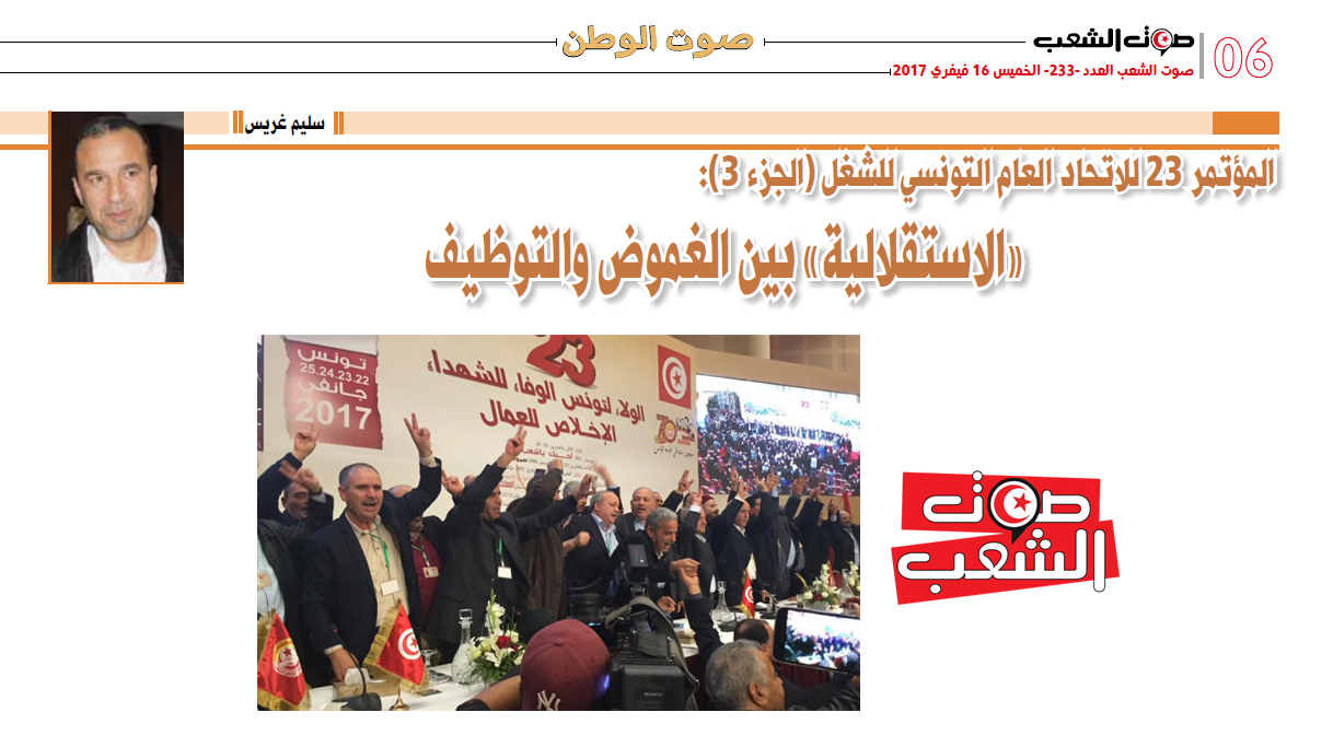 استقلالية الاتحاد عن الجميع هي من البديهيات إلا أن توظيفها ضد البعض من المتمسكين بها على خلفيّة انتماءاتهم السياسية التقدمية لعزلهم وإقصائهم أمر يثير الريبة كما أن الخلط المتعمد بين الخصوم الحقيقيين للعمل النقابي والمنتصرين له يثير الشكوك حول نبل الحديث عن الاستقلالية.