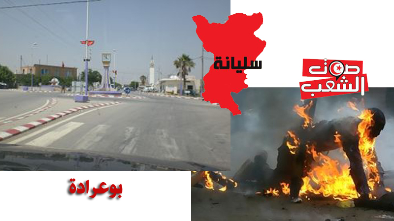 سكب الشاب أسامة بن عزوز البوغانمي أصيل مدينة بوعرادة على نفسه البنزين وحرق نفسه يوم الاربعاء 22 فيفري 2017 أمام مقر مركز الشرطة بالمدينة .