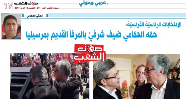 احتشد أكثر من 70 ألف مواطن فرنسي يوم 9 أفريل بمدينة مرسيليا وتحديدا بالمرفأ القديم، وذلك لمساندة المترشح 4Sans titre-2للانتخابات الرئاسية عن اليسار الراديكالي جون ليك ميلونشون. نزل الرفيق حمة الهمامي الناطق الرسمي باسم الجبهة الشعبية ضيف شرف، فكان له في  البداية لقاء سريع بميلونشون ثم تابع مداخلة المترشح أمام الحضور. علما وأنّ عدد المترشحين للانتخابات الرئاسية الفرنسية هذه المرة، 11 مترشحا، مما يطرح سؤالا عن حضور الرفيق حمة الهمامي إلى جانب ميلونشون دون غيره؟. بعيدا عن الخلفية الفكرية والإيديولوجية بين الرجلين، هل هناك مشروع سياسي ورؤية تجمع “الجبهة الشعبية التونسية” و”ائتلاف فرنسا انسوميز”؟. هل للشعب التونسي مصلحة مباشرة في التّجذّر الجماهيري وإمكانية صعود ميلونشون إلى الحكم؟.