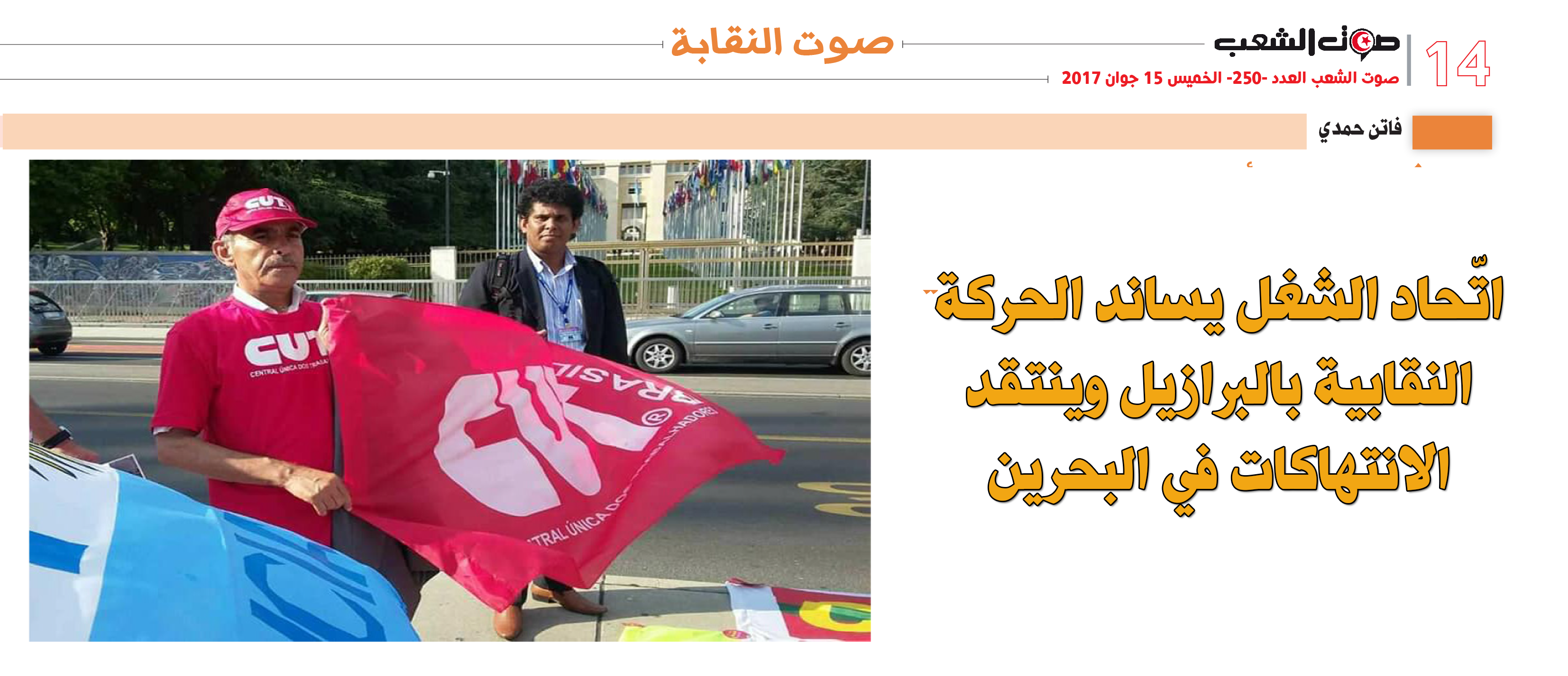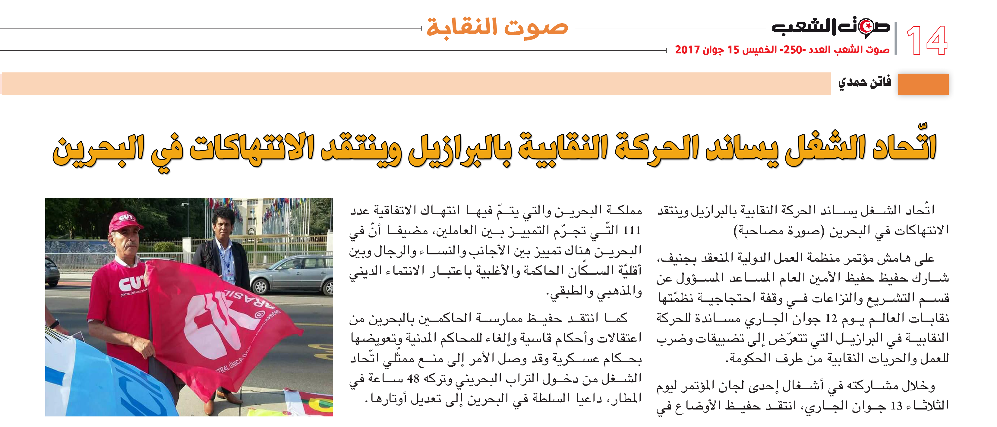 الرئيسية / صوت النقابة / اتّحاد الشغل يساند الحركة النقابية بالبرازيل وينتقد الانتهاكات في البحرين