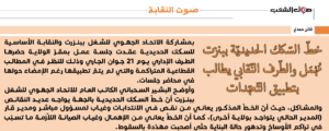 بمشاركة الاتحاد الجهوي للشغل ببنزرت والنقابة الأساسية للسكك الحديدية عقدت جلسة عمل بمقرّ الولاية حضرها الطرف الإداري يوم 21 جوان الجاري وذلك للنظر