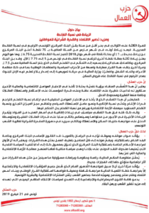 – يدعو كافة القوى الديمقراطية والاجتماعية إلى التصدي لسياسات الائتلاف الحاكم اليميني التي تهدف إلى مزيد تفقير الشعب ورهن البلاد.