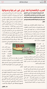 إنّ الموقف السليم أمام التحرش بإيران هو الوقوف ضدّ السياسة الأمريكية والوقوف إلى جانب الشعب الإيراني وإلى جانب الشعب الفنزويلي لوضع حدّ للغطرسة الأمريكية لأنّ الشعوب العربية تمثل اليوم الضحية الأولى وفي مقدمتها الشعب الفلسطيني الذي يتصدى معزولا للصهيونية ولصفقة القرن الامريكية سيّئة الصيت.