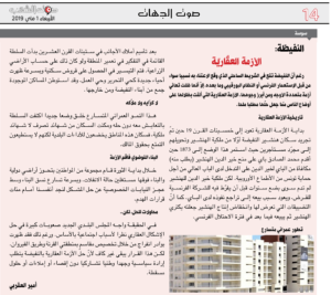 * البناء الفوضوي فاقم الازمة: خلال بداية الثورة قامت مجموعة من المواطنين بتحوز اراضي دولية و البناء فوقها مستغلين حالة الانفلات و بسرعة تسارع نسق البناء وسط عجز النيابات الخصوصية عن حل المشكل لنجد انفسنا امام مئات قرارات الهدم