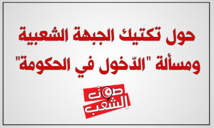ومهما يكن من أمر فرب ضارة نافعة كما يقول المثل. فالجبهة الشعبية في حاجة مستمرة إلى تعميق خطّها التكتيكي. وهذه فرصة هامة تتوفر لها في هذا الظرف الصعب بل الحاسم من المسار الثوري التي تعرفه بلادنا منذ سقوط الدكتاتورية، لتوضيح بعض القضايا السياسية الراهنة التي ما تزال ضبابية بالنسبة إلى العديد من مناضلات ومناضلي الجبهة بشكل خاص والحركة الديمقراطية بشكل عام، سواء بسبب جدّتها أو بسبب ضعف النقاش والجدل حولها وهو أمر لا بدّ من تلافيه إذ لا تطور لخط الجبهة وتصوراتها وبرامجها ومواقفها دون إرساء تقاليد نقاش حول أمهات القضايا الإستراتيجية والتكتيكية التي تهم حياة الجبهة ومصيرها ووحدتها.