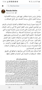 للتذكير، نشرت رئيسة لجنة النظافة والعناية بالبيئة راوية عميرة تدوينة عبر صفحتها الرسمية على موقع التواصل الاجتماعي تدوينة أكّدت من خلال سياسة التفرّد بالرأي، سياسة التعسف على الراي المخالف وهرسلته من قبل رئيس البلدية. وقد ورد في التدوينة: “أنا راوية عميرة رئيسة لجنة النظافة والعناية بالبيئة وبالرغم من تواجدي اليومي صلب العمل البلدي إلا أنني وأغلب الزملاء لسنا على علم بالبيان الذي أصدره رئيس البلدية اليوم والذي حشرنا فيه دون استشارتنا المسبقة، واستنكر محاولاته المتواصلة لتكميم أفواه البعض من المستشارين وهرسلتهم على غرار ما يقوم به اليوم من محاولات لتقييد عمل الزميل زاهر اللوز ، حيث كان من أولى وأحرى أن يفتح تحقيق جدي في شبهات الفساد، لا أن ينتهح طريق التهديد والوعيد، وهذه الممارسات ليست بجديدة وكان من شأنها أن أحبطت العديد من المستشارين.