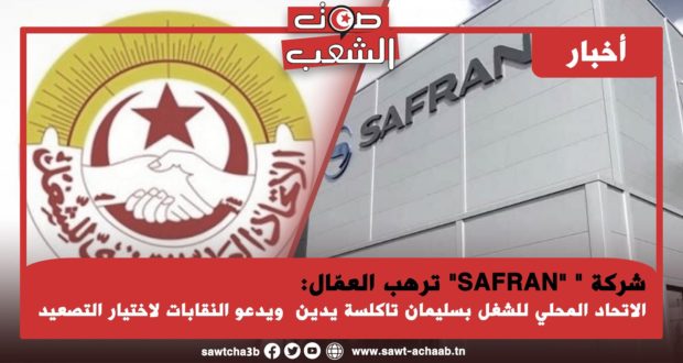 أدان الاتّحاد المحلّي للشغل بسليمان تاكلسة في بيانه الصادر يوم 12 ماي الجاري سياسة الهروب إلى الأمام التي أقدمت عليها إدارة شركة “SAFRAN” زودياك سابقا من خلال إصدارها لبيان ترهيبي للعمّال من أجل حملهم على الانصياع لقترحاتها الهزيلة.