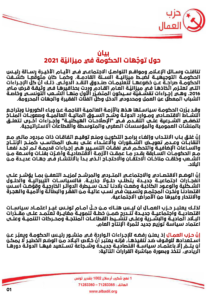 “صوت الشعب تنشر بيان حزب العمّال الصادر بتاريخ 19 ماي 2020”