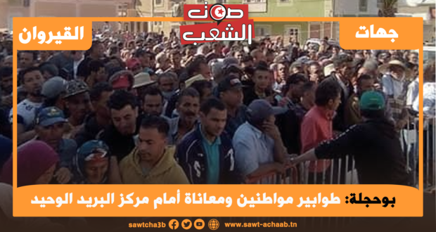 يشهد مركز البريد ببوحجلة بولاية القيروان اكتظاظا غير مسبوق وفوضى عارمة طيلة أيام، حيث تتجمّع أمامه طوابير من المواطنين في وضع مأساوي وغير إنساني، حيث ترى المسنّ والحامل وذوي الاحتياجات الخصوصية فضلا على مئات المواطنين، وكلّ ينتظر دوره لساعات تحت أشعّة الشمس.