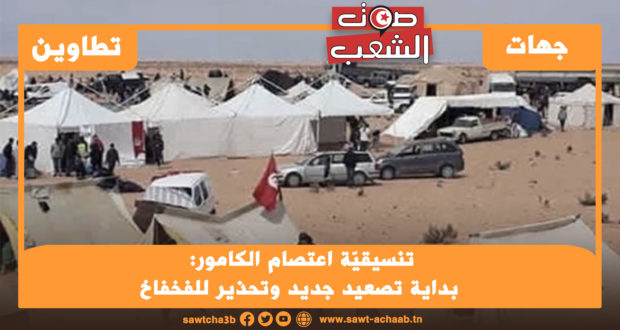 دعا معتصمو الكامور اليوم الخميس 2 جويلية 2020 إلى التجمهر أمام مقر الاتحاد الجهوي للشغل بولاية تطاوين للانطلاق في الخطوات التصعيدية. ونشرت الصفحة الرسمية لـ”تنسيقية اعتصام الكامور” على موقع “فايسبوك” تدوينة جاء فيها “يا شعبنا…كونوا في الموعد أمام مقر اتحاد الشغل بتطاوين…بعدها سنبدأ خطوتنا التصعيدية”.