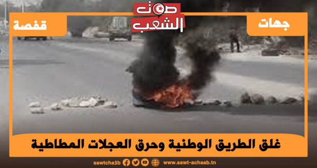 الرئيسية / صوت الجهات / غلق الطريق الوطنية وحرق العجلات المطاطية للمطالبة بالتشغيل