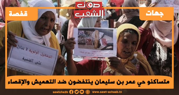 نظّم صباح اليوم الخميس 09 جويلية 2020 متساكنو حي عمر بن سليمان التابع لمعتمدية الڨصر من ولاية ڨفصة مسيرة سلمية انطلقت من الحي في اتجاه مقر بلدية القصر أين تجمّعوا في وقفة احتجاجية للمطالبة بالتشغيل والتنمية وبفك عزلتهم عن المعتمدية.