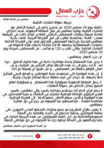 أصدر حزب العمال بصفاقس بيانا بتاريخ 2 أكتوبر بعنوان “جريمة حمولة النفايات الطبية” وذلك لإنارة الرأي العام حول شحنة النفايات الطبية التي اختفت وإلى الآن غير معلوم مكان اتلافها.