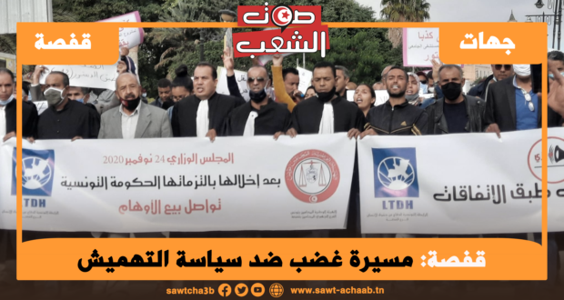 بدعوة من الرابطة التونسية للدفاع عن حقوق الإنسان فرع قفصة، والفرع الجهوي للمحامين جابت اليوم السبت 21 نوفمبر مدينة قفصة مسيرة، شارك فيها المجتمع المدني والسياسي والمعطلون عن العمل، مندّدة بالوضع التنموي المتدهور مطالبة بحق الجهة في التنمية والتشغيل. هذه المسيرة جاءت إثر الإعلان عن عقد مجلس وزاري مخصص للجهة يوم 24 نوفمبر 2020، وللتذكير فإنّ كل من الرابطة والمحامين قد أعلنوا مقاطعة هذا المجلس الوزاري الذي يعتبرانه فصل آخر من فصول الوعود الزائفة للجهة مطالبين بتفعيل قرارات المجالس الوزارية السابقة. هذا وقد رفع المحتجون شعارات مندّدة بسياسة التهميش للجهة التي تنتهجها كل الحكومات المتعاقبة.