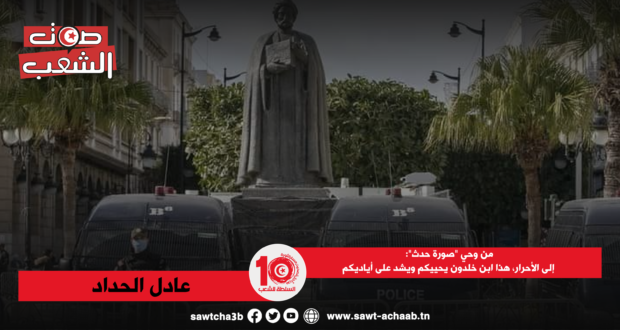 عبد الرحمان ابن خلدون، هذا الواقف دائما بشرف في ساحتنا متوسطا شارعنا في قلب عاصمتنا، كتب تاريخنا ويتابع أيام حاضرنا.. يعرفنا حتى يكاد يسمينا. حين يضيق بنا الظرف نتحلق حوله ولا يهتز لصراخنا ولا يضجر من أناشيدنا ويتألم للفزع المنتشر أمامه وخلفه وعلى جانبيه.. يعرف الأحرار كما يعرف الطغاة ويدرك ما حل “بأساس العمران”. يشعر، وقد تصلب جلده، بألم الناس المتمكن من ضلوعهم ويحس بحرارة أنفاسهم ويشم روائحها رغم دخان الغازات التي تملأ المكان والزمان… لو تأملت في وجهه لرأيت عبوسه والبريق الساطع من عينيه وهو الذي يدرك وهج “الحرية”، العزيزة في قلوب طالبيها، كما تنطق بها حناجرهم وسواعدهم المرفوعة… لم تتغير حروفهم وكلماتهم وأغانيهم… تغيرت فقط أساليب ردهم وصدهم وقمعهم ووسائل البطش بهم.