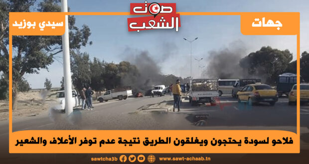 نفّذ أمس السبت 27 مجموعة من فلاحي بلدية لسودة التابعة لولاية سيدي بوزيد وقفة احتجاجية، تم خلالها غلق الطريق الرابطة بين لسودة وسيدي بوزيد وإحراق العجلات المطاطية وذلك بسبب نقص مادة الشعير والتلاعب بالتوزيع.