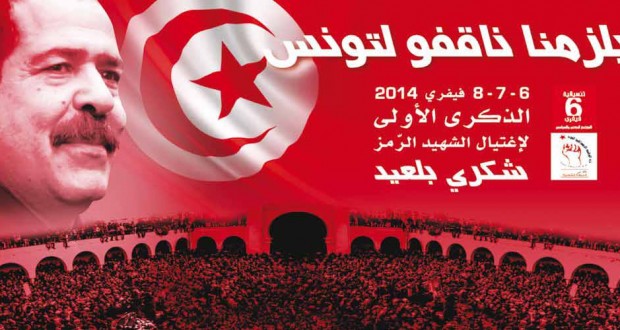 برنامج تظاهرات إحياء الذكرى الأولى لاغتيال الأمين العام لحزب الوطنيين الموحد وأحد أبرز مؤسّسي الجبهة الشعبية الشهيد شكري بلعيد