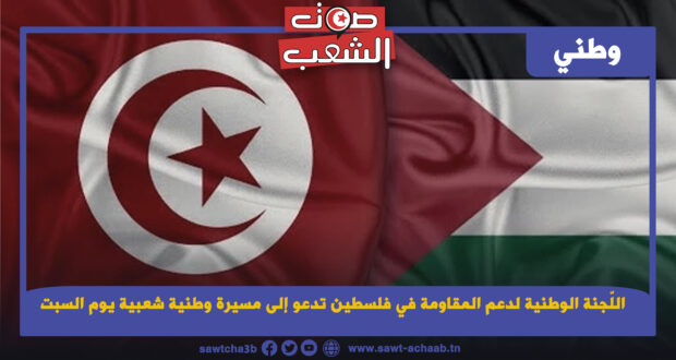 وتدعو اللجنة الوطنية لدعم المقاومة في فلسطين كلّ القوى السياسية والمدنية والشعبية والنقابية والطلبة والتلاميذ إلى المشاركة بكثافة في المظاهرة الوطنية التي ستنظمها يوم السبت 11 نوفمبر الجاري انطلاقا من منتصف النهار بساحة الجمهورية بتونس العاصمة تحت شعار: