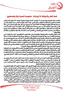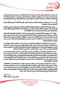 وتجدون مرفقا البيان الذي أصدره حزب العمال وتمّ سحبه من على الصفحة الرسمية: