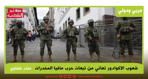 تصاعدت أحداث العنف المسلح منذ بداية شهر جانفي بين عصابات تهريب المخدرات ممّا سيؤدّي إلى انعكاسات سياسية واقتصادية على الإكوادور، فالأزمة الأمنية المتواصلة منذ شهور تفاقمت مؤخّرا إثر هروب قائد إحدى العصابات من السّجن وإعلان حالة الطوارئ في البلاد يوم 8 جانفي ما أدى إلى ارتكاب جرائم عديدة في أغلب المدن وهروب قائد عصابة أخرى لم يمر ثلاثة أيام على إيقافه مع أربعين سجين حقّ عام.