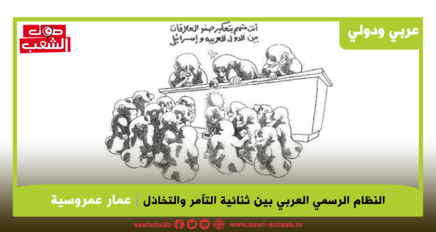 إنّ مسار انحدار وتدحرج النظام العربي الرسمي سيرورة طويلة ومعقّدة حكمتها على الدّوام موازين قِوى بين كتله وفروعه المتنافرة، ومن المفيد الملاحظة أنّ حالات التّعافي والوهن كانت على الدّوام تقريبا مرتبطة بطبيعة الموقف من القضية الفلسطينية التّي أصبح حضورها في السنوات الأخيرة مرتبطا بوهم حلّ الدولتين ووهم نفق المفاوضات العبثيّة على حساب خيار المقاومة المسلّحة والتّحرير الكامل لكلّ أراضي فلسطين التّاريخيّة.