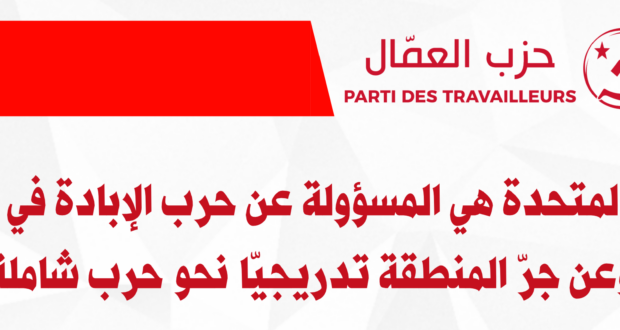 - إنّ حزب العمال يعتبر أن الولايات المتحدة هي المسؤول الأوّل عن هذه التطورات الخطيرة التي تهدّد بحريق في المنطقة لأنها هي التي ما انفكّت تدعم عسكريا وسياسيّا وإعلاميّا ودبلوماسيّا حرب الإبادة التي يشنّها الكيان ضدّ الشعب الفلسطيني منذ أكثر من ستة أشهر وتغطّي اعتداءاته على بلدان المنطقة وانتهاكه للقوانين الدولية والإنسانيّة وتعترض على أيّ دعوة لوقف هذه الحرب وهذه الاعتداءات وتنشر بوارجها الحربية لمنع أي دعم للشعب الفلسطيني بما في ذلك إيصال المساعدات الإنسانية لأهالي غزة المحاصرين برّا وبحرا وجوّا، بلا غذاء ولا ماء ولا دواء، ممّا أدّى إلى استشهاد أكثر من 33 ألف فلسطينيا وفلسطينية معظمهم من النساء والأطفال وإصابة أكثر من 76 ألف آخرين عدا عشرات الآلاف من المفقودين تحت الأنقاض والدّمار الذي حلّ بالمساكن والمستشفيات والمساجد.