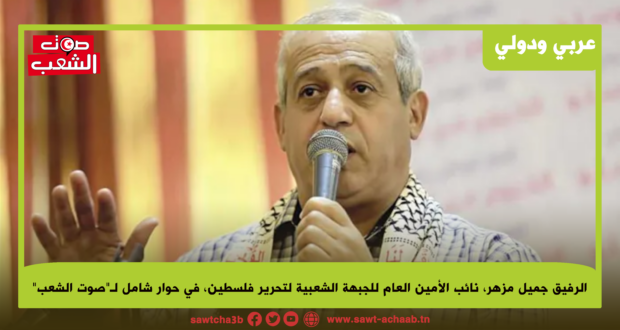 لمواكبة هذه المستجدات على الساحة الفلسطينية ولإلقاء الضوء على ما يجري في المنطقة والعالم من تحوّلات نعطي الكلمة في هذا العدد من جريدتنا للرفيق جميل مزهر، نائب الأمين العام للجبهة الشعبية لتحرير فلسطين الذي أجاب على أسئلتنا بكل رحابة صدر رغم انشغالاته المكثفة كمكوّن أساسي من مكوّنات المقاومة الوطنية الفلسطينية.