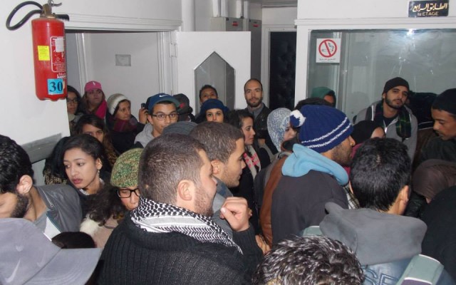 تمّ صباح اليوم السبت 13 ديسمبر 2014 اقتحام فرقة أمنية للقاعة التي يعتصم بها مناضلو اتحاد طلبة تونس بوزارة التعليم العالي والبحث العلمي، وقد تمّ إخراج المعتصمين بالعنف وإيقاف الطالبان أنيس بوسليمي وعمر بلحاج عمر.