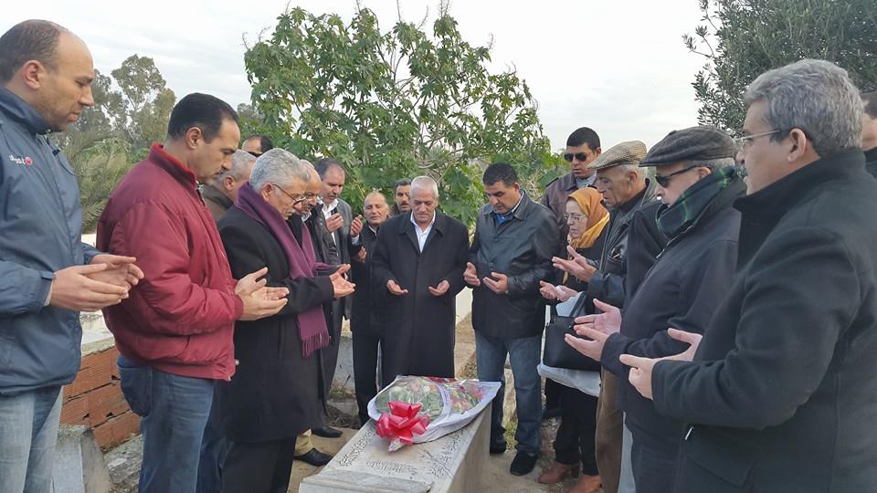 ugttتحوّل صبيحة اليوم الجمعة 8 جانفي 2015 الأمين العام للاتّحاد العام التونسي للشغل حسين العباسي إلى مقبرة الجلاز مع ثلة من مناضلي الاتحاد ومسؤوليه لقراءة الفاتحة على روح الشهيد النقابي سعيد قاقي الذي توفي تحت التعذيب في دهاليز الداخلية في أحداث 26 جانفي 1978 أو ما عرف بأحداث “الخميس الأسود”.