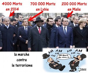 تداول نشطاء الفضاء الافتراضي، الفايسبوك والتويتر(…) بكثير من السخريّة والتندّر، وحتى الاستغراب، صورة لمسيرة أمس بباريس، مسيرة زعماء العالم وقاداته مندّدة بالإرهاب على إثر عملية “شارلي ايبدو” الإرهابيّة.