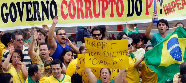 أمّا في البرازيل فإن الجماهير تنزل للمرّة الثانية بمئات الآلاف إلى الشوارع في أقلّ من شهر للتنديد بالفساد وللمطالبة برحيل الرئيسة “ديلما روسّوف”. وجاءت هذه التحرّكات العارمة والتي حشدت أكثر من مليون ونصف متظاهر في كبرى مدن البلاد في 15 مارس الماضي و600 ألف متظاهر أيام 11 و12 أفريل الجاري إثر انكشاف عملية فساد كبرى في شركة “بيتروبراس” العملاقة وهي كبرى الشركات البترولية الوطنية في البرازيل، حيث كشفت بعض التقارير عن تورّط 13 عضوا من مجلس الشيوخ و 22 من مجلس النواب وحاكمي مقاطعتين والمسؤول المالي في “حزب العمل” الحاكم في قضايا الحصول على رشاوي تُقدّر بالمليارات خلال العشر سنوات الأخيرة من الشركة المذكورة. ويطالب المتظاهرون بمحاسبة المتورّطين وبرحيل الرئيسية المنتخبة لولاية ثانية في شهر نوفمبر الماضي لاتهامهم إياها بمعرفتها بالموضوع والتستّر عليه. ولم تعلن ايّ من الأحزاب البرازيلية المعارضة تبنّيها الصريح لهذه التحرّكات الشعبية العارمة، بل إنّ معظمها حصل نتيجة لتلبية نداءات تواترت على الشبكات الاجتماعية من جمعيات مدنية وخاصّة منها حركة “انزل إلى الشارع”