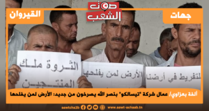 ألفة بعزاوي يخوض عمال شركة “تيسالكو- TUSALCO” بمعتمدية نصر الله من ولاية القيروان إضرابا مفتوحا عن العمل منذ 27 أوت 2020 بتأطير من نقابتهم الأساسية. شركة “تيسالكو” هذه هي إحدى شركات الإحياء والتنمية الفلاحية التي تستغل 2700 هكتارا من الأراضي ...