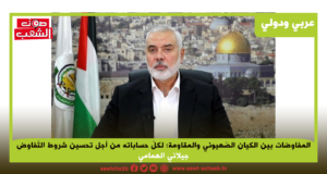 تواصل “صوت الشعب” متابعة ما يجري من تطورات يومية على الساحة الفلسطينية والتواصل مع قادة فصائل المقاومة الوطنية الفلسطينية. نلتقي اليوم مع الرفيق فهد سليمان، الأمين العام للجبهة الديمقراطية لتحرير فلسطين، لنستعرض معه مواقف الجبهة ممّا يجري في فلسطين والمنطقة ...