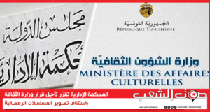 قرّرت المحكمة الإدارية اليوم الثلاثاء 14 أفريل تأجيل تنفيذ قرار وزيرة الثقافة باستئناف تصوير المسلسلات الرمضانية. وفي تصريحه لإذاعة “شمس اف ام” قال الناطق الرسمي باسم المحكمة الإدارية القاضي عماد الغابري أنّه تمّ اتّخاذ القرار لتأكّد وجود حالة قصوى وهو ...