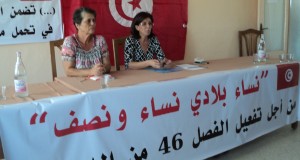 التأمت بسوسة عشية الجمعة 4 سبتمبر 2015 ندوة صحفية أعلن فيها عن مبادرة “نساء بلادي نساء ونصف” من أجل تفعيل الفصل 46 من الدستور. و قد نصت أرضية المبادرة على تجميع كل القوى النسائية لتفعيل منطوق الفصل 46 في ضمان ...